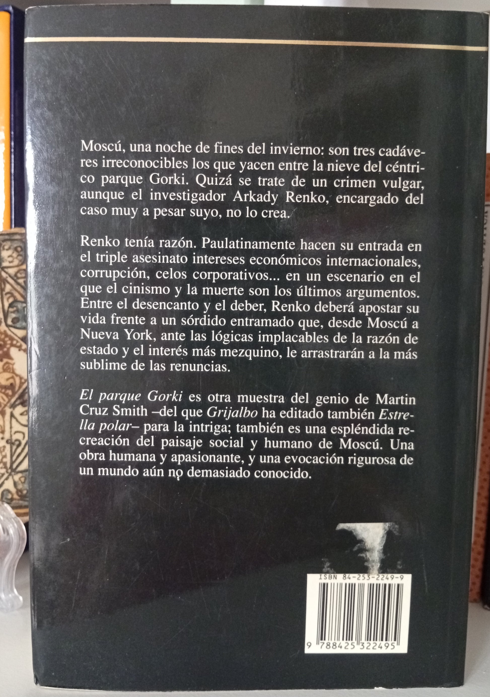 El parque Gorki es otra muestra del genio de Martín Cruz Smith-del que Grijalbo ha editado tabmién Estrella polar- para la intriga; también es una espléndida recreación del paisaje social y humano de Moscú. Una obra humana y apasionante, y una evocación rigurosa de un mundo aún no demasiado conocido.